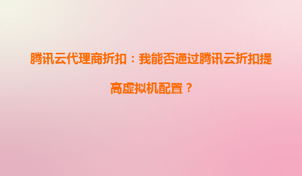 騰訊云代理商折扣:我能否通過騰訊云折扣提高虛擬機配置? 一、騰訊云代理商折扣的核心優(yōu)勢 騰訊云作為國內領先的云計算服務商,通過代理商體系為用戶提供靈活的價格方案。代理商折扣通常涵蓋新購、續(xù)費、...