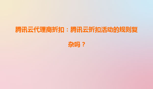 2025-09-30騰訊云代理商折扣:騰訊云折扣活動的規(guī)則復雜嗎? 一、騰訊云折扣活動的規(guī)則解析 騰訊云作為國內(nèi)領先的云計算服務提供商,經(jīng)常推出各類折扣活動以吸引用戶。許...