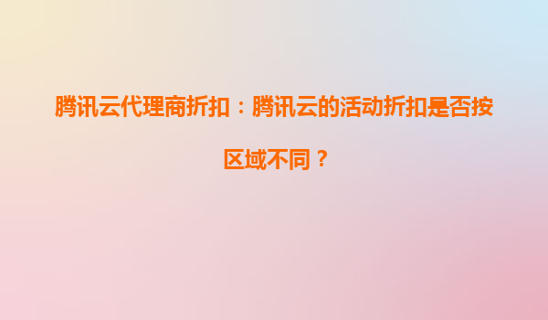 2025-09-25騰訊云代理商折扣:區(qū)域差異與全球服務(wù)優(yōu)勢解析 騰訊云代理商折扣的區(qū)域差異化策略 騰訊云作為全球領(lǐng)先的云計算服務(wù)商,其代理商折扣政策會根據(jù)不同地區(qū)的市場需求、資源成本和競爭環(huán)境進行動態(tài)調(diào)整。例如...