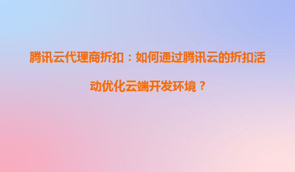 4008-020-360 騰訊云代理商折扣:如何通過騰訊云的折扣活動優(yōu)化云端開發(fā)環(huán)境? 一、騰訊云的核心優(yōu)勢與開發(fā)者價(jià)值 作為國內(nèi)領(lǐng)先的云計(jì)算服務(wù)商,騰訊云為開發(fā)者提供了完整的云端支持體系: ...