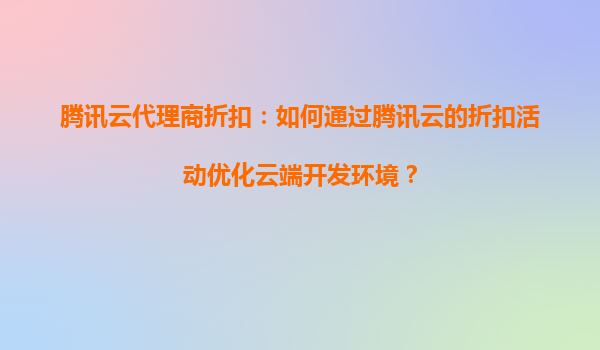 4008-020-360 騰訊云代理商折扣:如何通過(guò)騰訊云的折扣活動(dòng)優(yōu)化云端開(kāi)發(fā)環(huán)境? 一、騰訊云的核心優(yōu)勢(shì)與開(kāi)發(fā)者價(jià)值 作為國(guó)內(nèi)領(lǐng)先的云計(jì)算服務(wù)商,騰訊云為開(kāi)發(fā)者提供了完整的云端支持體系: ...