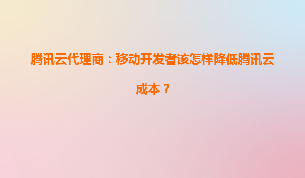 騰訊云代理商:移動開發(fā)者如何有效降低云服務成本?