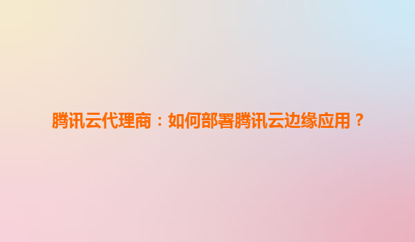 騰訊云代理商如何部署騰訊云邊緣應(yīng)用?