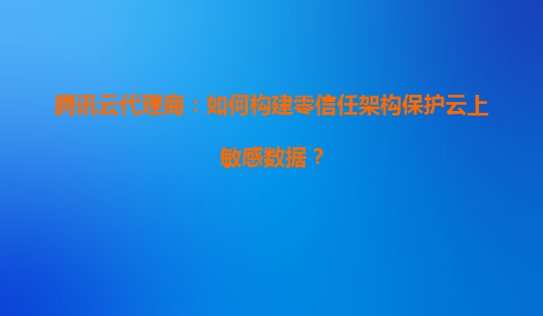 騰訊云代理商:構(gòu)建零信任架構(gòu)保護(hù)云上敏感數(shù)據(jù)