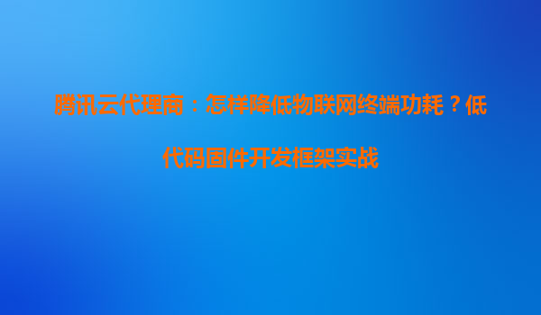 騰訊云代理商:如何通過(guò)低代碼固件開(kāi)發(fā)框架降低物聯(lián)網(wǎng)終端功耗
