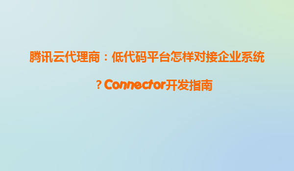 低代碼平臺如何高效對接企業(yè)系統(tǒng)?騰訊云Connector開發(fā)指南