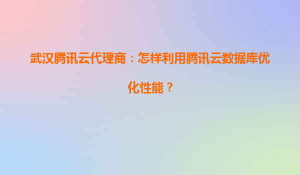 武漢騰訊云代理商:怎樣利用騰訊云數(shù)據(jù)庫(kù)優(yōu)化性能?