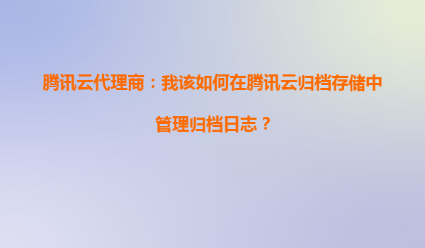 騰訊云代理商指南:如何在騰訊云歸檔存儲(chǔ)中高效管理歸檔日志