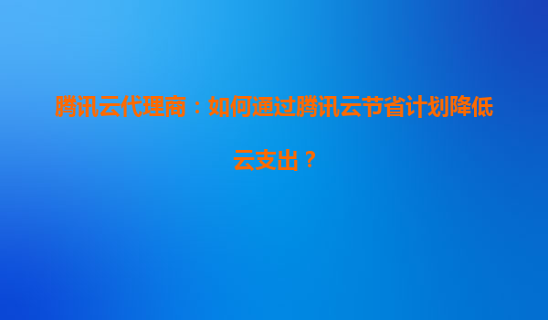 騰訊云代理商:如何通過(guò)騰訊云節(jié)省計(jì)劃降低云支出?