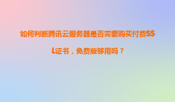 4008-020-360 如何判斷騰訊云服務(wù)器是否需要購買付費(fèi)SSL證書,免費(fèi)版夠用嗎? 引言 隨著互聯(lián)網(wǎng)安全意識(shí)的提升,SSL證書已成為網(wǎng)站必備的安全配置。騰訊云作為國內(nèi)領(lǐng)先的云服務(wù)商,提供了免費(fèi)和付費(fèi)兩種SSL證書選項(xiàng)。那么,...