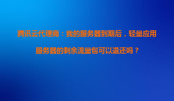 2025-10-29騰訊云代理商:我的服務(wù)器到期后,輕量應(yīng)用服務(wù)器的剩余流量包可以退還嗎? 一、騰訊云輕量應(yīng)用服務(wù)器流量包政策解析 騰訊云輕量應(yīng)用服務(wù)器(Lighthouse)作為一款面向中小企業(yè)和個(gè)人開發(fā)者的云服務(wù)器...