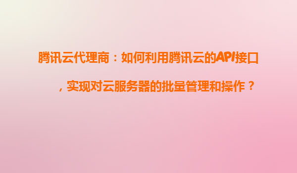 2025-10-29騰訊云代理商:如何利用騰訊云的API接口,實(shí)現(xiàn)對云服務(wù)器的批量管理和操作? 一、騰訊云API接口的優(yōu)勢 騰訊云提供豐富的API接口,覆蓋計(jì)算、存儲、網(wǎng)絡(luò)、安全等各類云服務(wù)。這些API接口為...