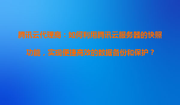 2025-10-28騰訊云代理商:如何利用騰訊云服務(wù)器的快照功能,實現(xiàn)便捷高效的數(shù)據(jù)備份和保護? 一、騰訊云快照功能的優(yōu)勢 作為國內(nèi)領(lǐng)先的云服務(wù)提供商,騰訊云在數(shù)據(jù)備份與保護方面提供了強大的快照功能,具備以下核心優(yōu)勢...