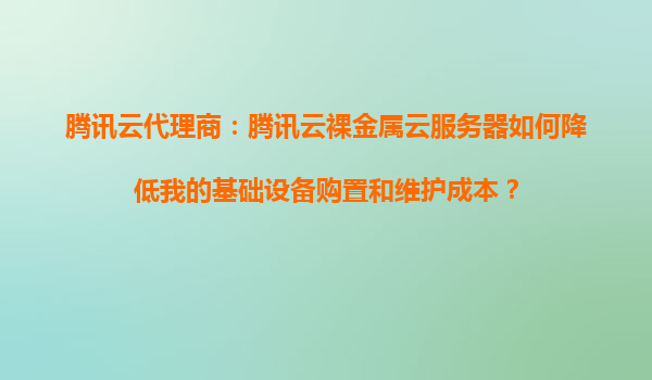 4008-020-360 騰訊云代理商:騰訊云裸金屬云服務(wù)器如何降低基礎(chǔ)設(shè)備購置和維護(hù)成本? 一、裸金屬云服務(wù)器的核心優(yōu)勢 騰訊云裸金屬云服務(wù)器(BareMetalCloud)是一種兼具物理機(jī)性能與云服務(wù)彈...