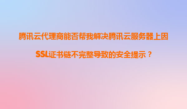 2025-11-07騰訊云代理商如何解決SSL證書鏈不完整的安全提示?解析騰訊云的核心優(yōu)勢(shì) 在網(wǎng)站運(yùn)維過程中,SSL證書鏈不完整是導(dǎo)致瀏覽器出現(xiàn)安全警告的常見問題之一。這不僅影響用戶體驗(yàn),還可能降低搜索引擎排名。騰訊云...