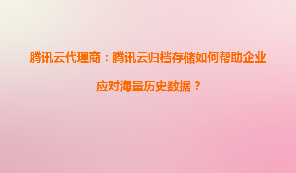 2025-10-03騰訊云代理商:騰訊云歸檔存儲能否提升企業(yè)數(shù)據(jù)管理透明度? 引言 在數(shù)字化時代,企業(yè)數(shù)據(jù)量呈爆炸式增長,如何高效、安全地管理這些數(shù)據(jù)成為企業(yè)面臨的重要挑戰(zhàn)。騰訊云歸檔存儲作為一種低成本、高可靠的...