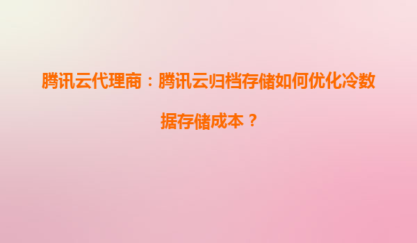 2025-10-03騰訊云代理商:騰訊云歸檔存儲如何優(yōu)化冷數(shù)據(jù)存儲成本? 引言 隨著企業(yè)數(shù)據(jù)量的快速增長,冷數(shù)據(jù)(訪問頻率極低但需長期保存的數(shù)據(jù))的存儲成本成為許多企業(yè)關(guān)注的焦點。騰訊云歸檔存儲(CloudArchiveSto...