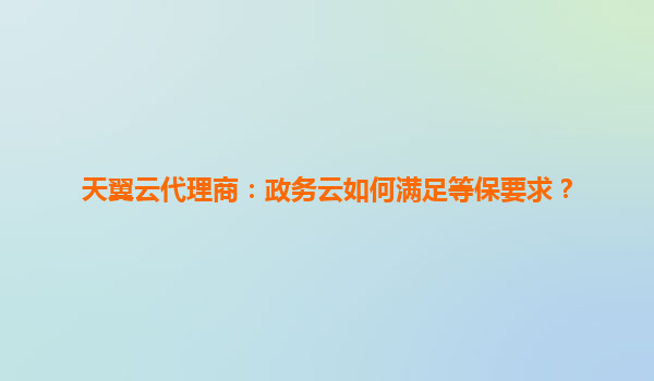 天翼云代理商:政務云如何滿足等保要求?