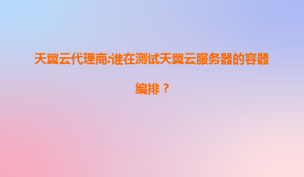 天翼云代理商:誰在測試天翼云服務(wù)器的容器編排?