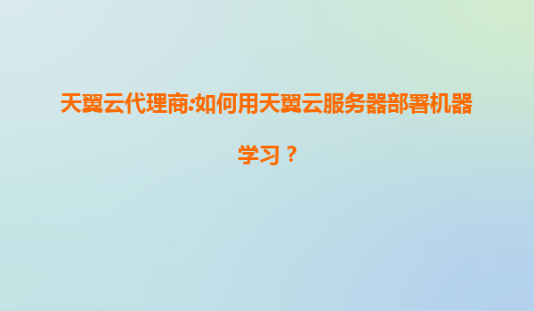 天翼云代理商:如何用天翼云服務(wù)器部署機(jī)器學(xué)習(xí)?