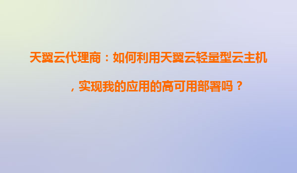 在數(shù)字化轉(zhuǎn)型的浪潮中,企業(yè)應(yīng)用的高可用性(High Availability, HA)成為業(yè)務(wù)連續(xù)性的核心需求。天翼云作為國內(nèi)領(lǐng)先的云服務(wù)提供商,其輕量型云主機(jī)產(chǎn)品憑借彈性、低成本和高性能優(yōu)勢,成為中小企業(yè)及開發(fā)者實(shí)現(xiàn)高可用部署的理想選擇。結(jié)合天翼云代理商的本地化服務(wù)與技術(shù)支持能力,用戶可以更高效地構(gòu)建穩(wěn)定、可靠的云上應(yīng)用環(huán)境。