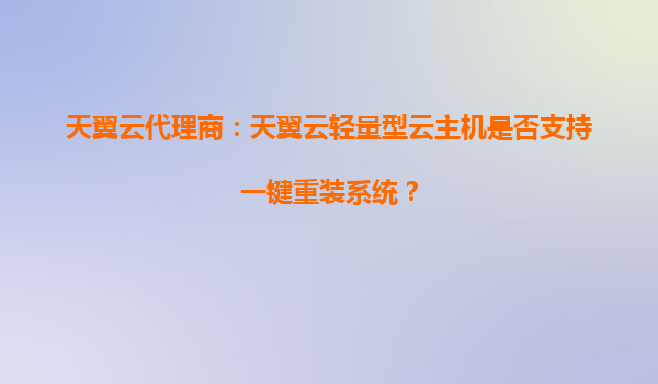 2025-11-01天翼云代理商:天翼云輕量型云主機(jī)是否支持一鍵重裝系統(tǒng)? 一鍵重裝系統(tǒng)的便捷性 在云服務(wù)的使用過(guò)程中,快速部署和系統(tǒng)重裝是用戶關(guān)注的焦點(diǎn)之一。天翼云輕量型云主機(jī)...