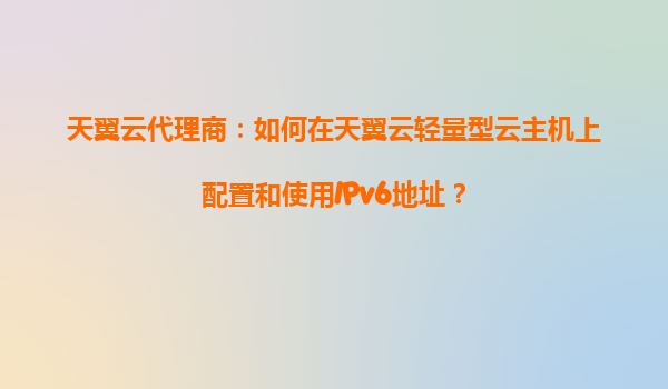 2025-11-01天翼云代理商指南:如何在天翼云輕量型云主機(jī)上配置和使用IPv6地址 前言:IPv6的重要性與天翼云的優(yōu)勢(shì) 隨著互聯(lián)網(wǎng)技術(shù)的飛速發(fā)展,IPv4地址資源日益枯竭,IPv6作為下一代互聯(lián)網(wǎng)協(xié)議,逐漸成為主流。天翼云作為...