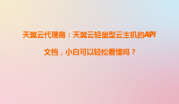 2025-11-01天翼云代理商:天翼云輕量型云主機(jī)的API文檔詳解——小白也能輕松上手 一、天翼云的核心優(yōu)勢(shì) 作為中國(guó)電信旗下的云計(jì)算服務(wù)品牌,天翼云憑借以下優(yōu)勢(shì)在市場(chǎng)中占據(jù)重要地位: 國(guó)家隊(duì)背景...