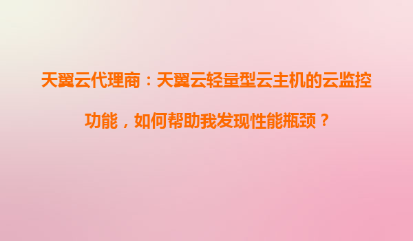 2025-11-01天翼云代理商:輕量型云主機(jī)云監(jiān)控功能如何精準(zhǔn)發(fā)現(xiàn)性能瓶頸 一、天翼云輕量型云主機(jī)的核心優(yōu)勢(shì) 天翼云輕量型云主機(jī)是基于中國(guó)電信強(qiáng)大網(wǎng)絡(luò)基礎(chǔ)設(shè)施打造的云計(jì)...