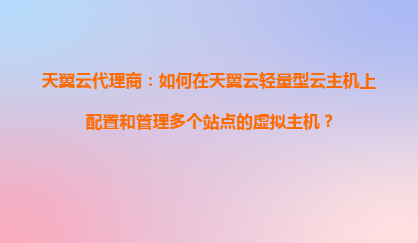 2025-10-29天翼云代理商指南:輕量型云主機(jī)多站點(diǎn)虛擬主機(jī)配置與管理 一、天翼云輕量型云主機(jī)的核心優(yōu)勢(shì) 作為中國(guó)電信旗下的云計(jì)算服務(wù)品牌,天翼云輕量型云主機(jī)以其高性價(jià)比、靈活擴(kuò)展和安全可靠的特...