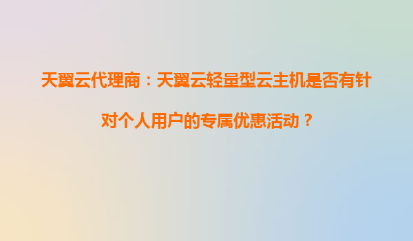 2025-10-29天翼云輕量型云主機(jī):個(gè)人用戶專屬優(yōu)惠活動(dòng)與代理服務(wù)優(yōu)勢(shì)解析 一、天翼云輕量型云主機(jī)簡(jiǎn)介 天翼云輕量型云主機(jī)是中國(guó)電信旗下云計(jì)算品牌推出的高性價(jià)比產(chǎn)品,專為個(gè)人...