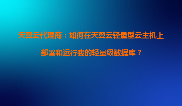 4008-020-360 天翼云代理商指南:如何在天翼云輕量型云主機(jī)上部署和運(yùn)行輕量級(jí)數(shù)據(jù)庫 引言 隨著云計(jì)算技術(shù)的快速發(fā)展,越來越多的企業(yè)和開發(fā)者選擇將應(yīng)用和數(shù)據(jù)遷移到云端。...