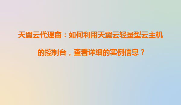 2025-10-29掌握天翼云輕量型云主機(jī)控制臺(tái):高效查看實(shí)例信息的實(shí)用指南 天翼云輕量型云主機(jī)的核心優(yōu)勢(shì) 作為中國(guó)電信旗下的云計(jì)算服務(wù)品牌,天翼云輕量型云主機(jī)憑借其高性能、低成本、易管理等特性,成為中小企業(yè)及個(gè)人開...