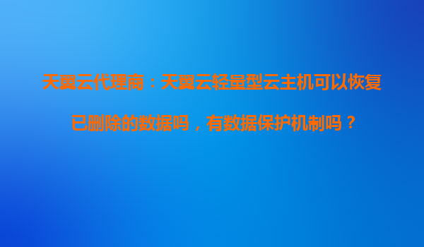 2025-10-28天翼云輕量型云主機數(shù)據(jù)恢復(fù)與保護機制詳解 天翼云代理商的優(yōu)勢與服務(wù)保障 作為中國電信旗下云計算品牌,天翼云憑借央企背景、全國覆蓋的數(shù)據(jù)中心資源及高安全性體系,在輕量型云主機領(lǐng)域提供穩(wěn)定可靠...