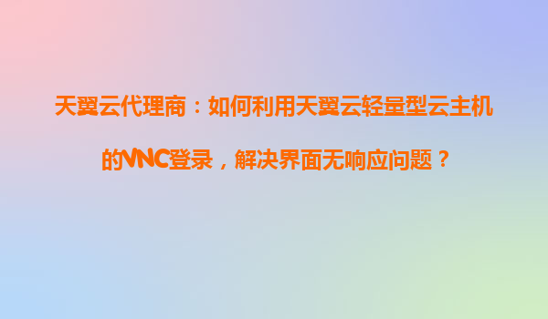 2025-10-28天翼云代理商:如何利用天翼云輕量型云主機(jī)的VNC登錄,解決界面無響應(yīng)問題? 一、天翼云輕量型云主機(jī)的核心優(yōu)勢 天翼云作為中國電信旗下的云計(jì)算品牌,其輕量型云主機(jī)憑借以下優(yōu)勢成為中小企業(yè)及開發(fā)者的首...