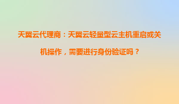 2025-10-28天翼云輕量型云主機(jī)安全便捷操作:重啟與關(guān)機(jī)需驗(yàn)證身份 引言:云計(jì)算時代的安全訴求 在數(shù)字化轉(zhuǎn)型加速的今天,企業(yè)上云已成必然趨勢。作為中國電信旗下的云計(jì)算服務(wù)品牌,天翼云憑借其央企背景和技術(shù)實(shí)力...