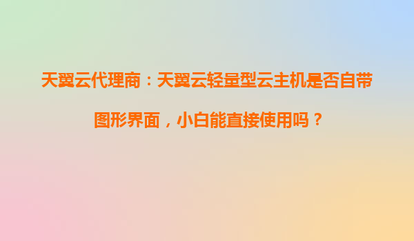 2025-10-27天翼云輕量型云主機(jī)是否自帶圖形界面?小白用戶能否直接上手? 一、天翼云輕量型云主機(jī)的核心特性 天翼云輕量型云主機(jī)是中國電信旗下天翼云推出的面向中小企業(yè)和個(gè)人開發(fā)者的基礎(chǔ)云計(jì)算服務(wù),主打...