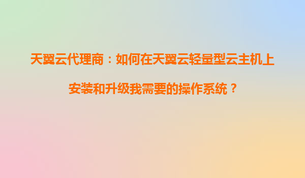 4008-020-360 天翼云代理商指南:如何在天翼云輕量型云主機(jī)上安裝和升級操作系統(tǒng) 一、天翼云的核心優(yōu)勢 作為中國電信旗下的云計(jì)算服務(wù)商,天翼云憑借以下優(yōu)勢成為企業(yè)上云的優(yōu)質(zhì)選擇: ...