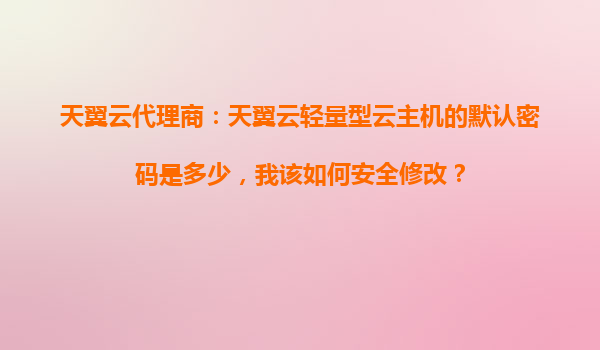 2025-10-27天翼云輕量型云主機(jī)默認(rèn)密碼及安全修改指南 一、天翼云輕量型云主機(jī)的默認(rèn)密碼 天翼云輕量型云主機(jī)在創(chuàng)建時(shí),系統(tǒng)會為每個(gè)實(shí)例生成一個(gè)隨機(jī)初始密碼,并通過控制臺或短信方式發(fā)送給...
