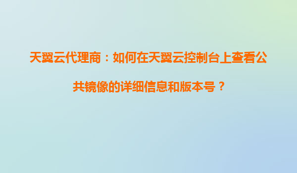 2025-10-25天翼云代理商指南:如何查看公共鏡像的詳細(xì)信息和版本號(hào) 作為中國(guó)電信旗下的云計(jì)算服務(wù)品牌,天翼云憑借其強(qiáng)大的基礎(chǔ)設(shè)施、安全可靠的服務(wù)以及豐富的云產(chǎn)品矩陣,已成為眾多企業(yè)和個(gè)人用戶的首選云平臺(tái)。對(duì)于代...