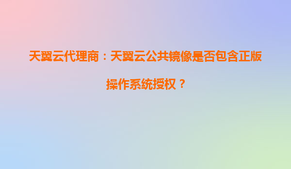 2025-10-20天翼云公共鏡像是否包含正版操作系統(tǒng)授權(quán)?——解析天翼云代理商的優(yōu)勢 一、天翼云公共鏡像與正版授權(quán)的關(guān)系 天翼云作為中國電信旗下的云計算服務(wù)品牌,其公共鏡像是用戶快速部署云服務(wù)器的重要資源。...