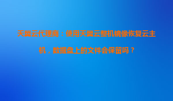 2025-10-19天翼云代理商:使用天翼云整機鏡像恢復(fù)云主機,數(shù)據(jù)盤文件會保留嗎? 一、整機鏡像恢復(fù)的原理與數(shù)據(jù)盤文件的保留問題 在使用天翼云的整機鏡像恢復(fù)功能時,許多...