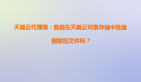 2025-10-14天翼云代理商指南:如何高效批量刪除舊文件 作為天翼云代理商,客戶常問(wèn):“能否在天翼云對(duì)象存儲(chǔ)中批量刪除舊文件?”答案是肯定的。天翼云對(duì)象存儲(chǔ)(OOS)提供強(qiáng)大且靈活的文件管理功能,支持批量操作,...