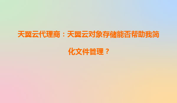 2025-10-11天翼云代理商:天翼云對象存儲能否幫助我簡化文件管理? 引言 在數(shù)字化時代,文件管理已成為企業(yè)和個人日常運營中不可或缺的一部分。隨著數(shù)據(jù)量的爆炸式增長,...