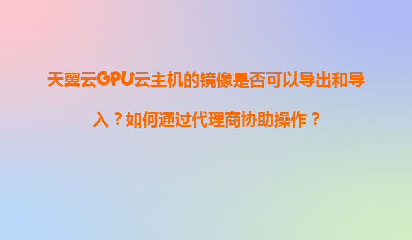 2025-11-07天翼云GPU云主機(jī)鏡像的導(dǎo)出導(dǎo)入及代理商協(xié)作指南 一、天翼云GPU云主機(jī)鏡像導(dǎo)出導(dǎo)入功能解析 天翼云作為中國電信旗下的云計(jì)算服務(wù)商,其GPU云主機(jī)廣泛應(yīng)用于AI訓(xùn)練、圖形渲染等高算力場景。鏡像的...