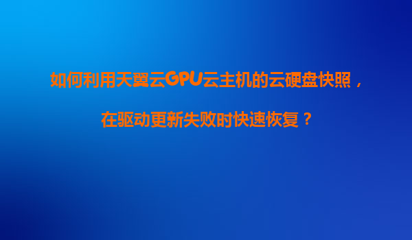 2025-11-07如何利用天翼云GPU云主機(jī)的云硬盤快照,在驅(qū)動更新失敗時(shí)快速恢復(fù)? 一、引言 在深度學(xué)習(xí)和高性能計(jì)算領(lǐng)域,GPU驅(qū)動的穩(wěn)定性至關(guān)重要。然而,驅(qū)動更新失敗可能導(dǎo)致系統(tǒng)崩潰、性能下降甚至無法...