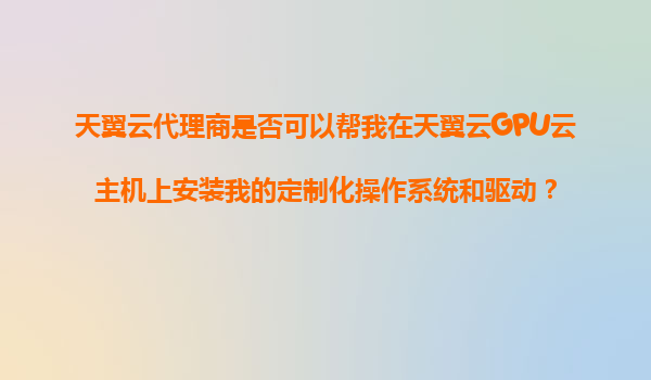 2025-11-06天翼云代理商是否可以幫我在天翼云GPU云主機(jī)上安裝我的定制化操作系統(tǒng)和驅(qū)動(dòng)? 一、天翼云GPU云主機(jī)的核心優(yōu)勢(shì) 天翼云作為中國(guó)電信旗下云計(jì)算品牌,其GPU云主機(jī)服務(wù)依托以下優(yōu)勢(shì)在行業(yè)占據(jù)領(lǐng)先地位: 高...