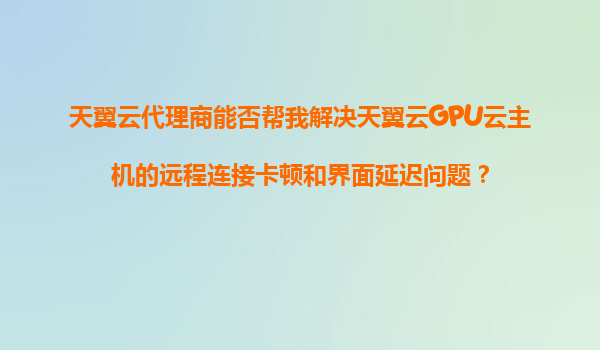 2025-11-06天翼云代理商能否解決天翼云GPU云主機(jī)的遠(yuǎn)程連接卡頓和界面延遲問(wèn)題? 一、問(wèn)題背景與代理商的作用 在使用天翼云GPU云主機(jī)時(shí),部分用戶可能會(huì)遇到遠(yuǎn)程連接卡頓或界面延...