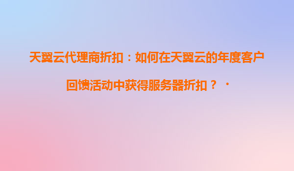 天翼云代理商折扣:如何在天翼云的年度客戶回饋活動中獲得服務(wù)器折扣?