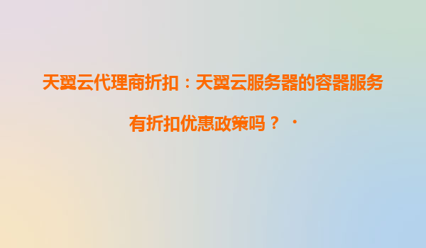 天翼云容器服務(wù):代理商折扣政策與核心優(yōu)勢解析